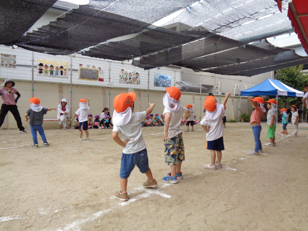 【みかん組】「うんどうかいってなぁに?」から少しずつお家の方に見てもらうことが楽しみに変わってきています。かけっこでは「よーい、ドン!」の合図が待てずに走りだしてしまう事もありますが、ダンスはニコニコ笑顔でかっこよくかわいく踊っていますよ。初めてのうんどうかい、みんなで元気いっぱいヒーロー目指して頑張ります。