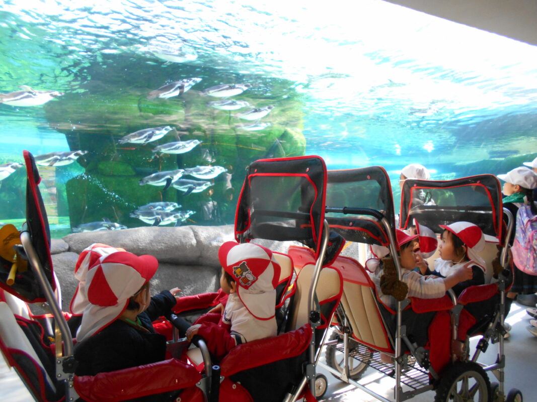 動物園に入ると指を指して「あ!」「おぉ!」など発見したことを嬉しそうに教えてくれていました。ペンギンコーナーではゆらゆら揺れる水の光に包まれながら、ペンギンを興味深くみていましたよ。