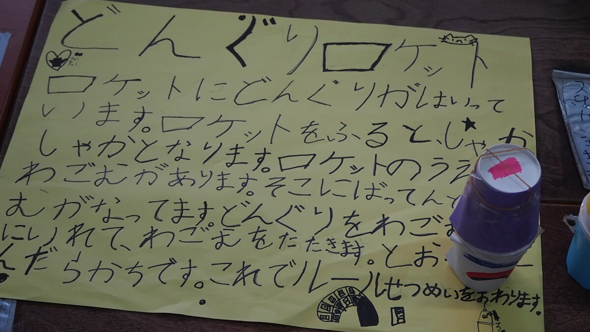 常盤小学校へ交流にいきました めろんぐみ 2025-12-11 小学生にルールを教えてもらいながら楽しくお話しています。おもちゃが壊れてしまった時はなおし方を教えてもらい、興味深くおもちゃを見ていました!「また遊ぼうね!」と最後まで仲良く遊んでいためろん組さんでしたよ! どんぐりロケット どんぐりマラカス