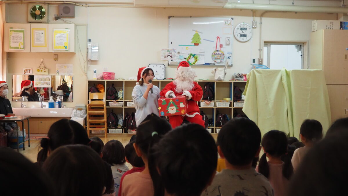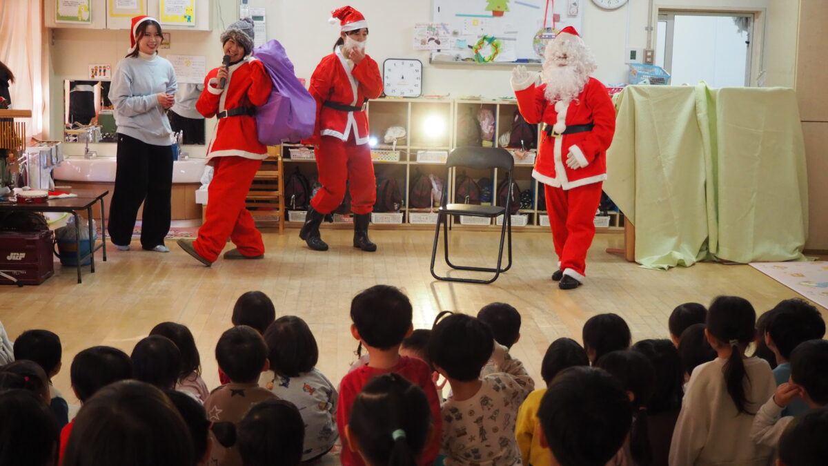 12月19日にクリスマス会がありました!子どもたちは朝からワクワク♪だって、サンタさんから届いたお手紙に「クリスマス会で会えるのを楽しみにしているね」と書かれていたから!今日は本当にサンタさんに会えるのかな?